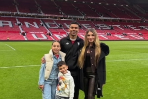 体育资讯3月17日讯 曼联中场卡塞米罗更新社媒,晒出全家在老特拉福德的合影。