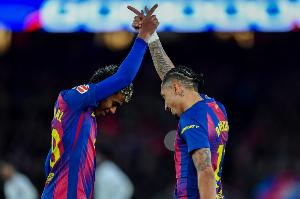 体育资讯3月19日讯 欧冠1/8决赛次回合,巴萨7-2纽卡,总比分8-3晋级8强。赛后在接受欧足联官网采访时,巴萨攻击手拉菲尼亚表示,球队下半场表现很好。