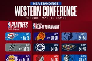 爵士不敌森林狼被淘汰出季后赛及附加赛,掘金不敌灰熊,火箭不敌湖人,森林狼升至西部第四,火箭跌至西部第五,掘金跌至西部第六;