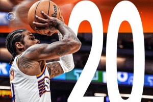 赛后太阳官推发布杰伦·格林20分数据海报,并写道:“杰伦·格林今日得分领跑全队!”